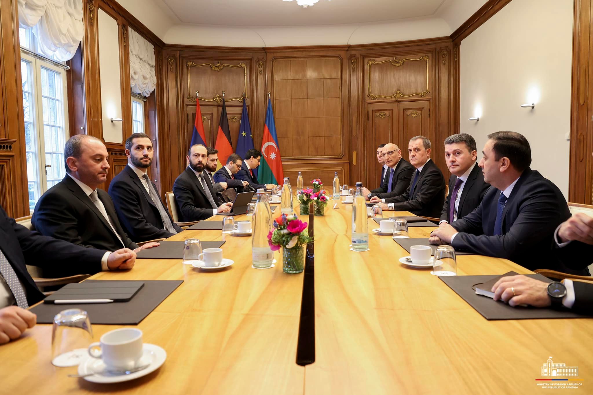 Բեռլինում մեկնարկել է Հայաստանի և Ադրբեջանի արտգործնախարարներ Արարատ Միրզոյանի և Ջեյհուն Բայրամովի ղեկավարած պատվիրակությունների հանդիպումը, հաղորդում է Հայաստանի արտաքին քաղաքական գերատեսչությունը՝ այլ մանրամասներ չփոխանցելով։ Միրզոյանն ու Բայրամովն այսօր հանդիպում են Գերմանիայի կանցլերի միջնորդությամբ Հայաստանի վարչապետի ու Ադրբեջանի նախագահի Մյունխենում փետրվարի 17-ին կայացած եռակողմ հանդիպման ժամանակ ձեռք բերված պայմանավորվածության համաձայն։
