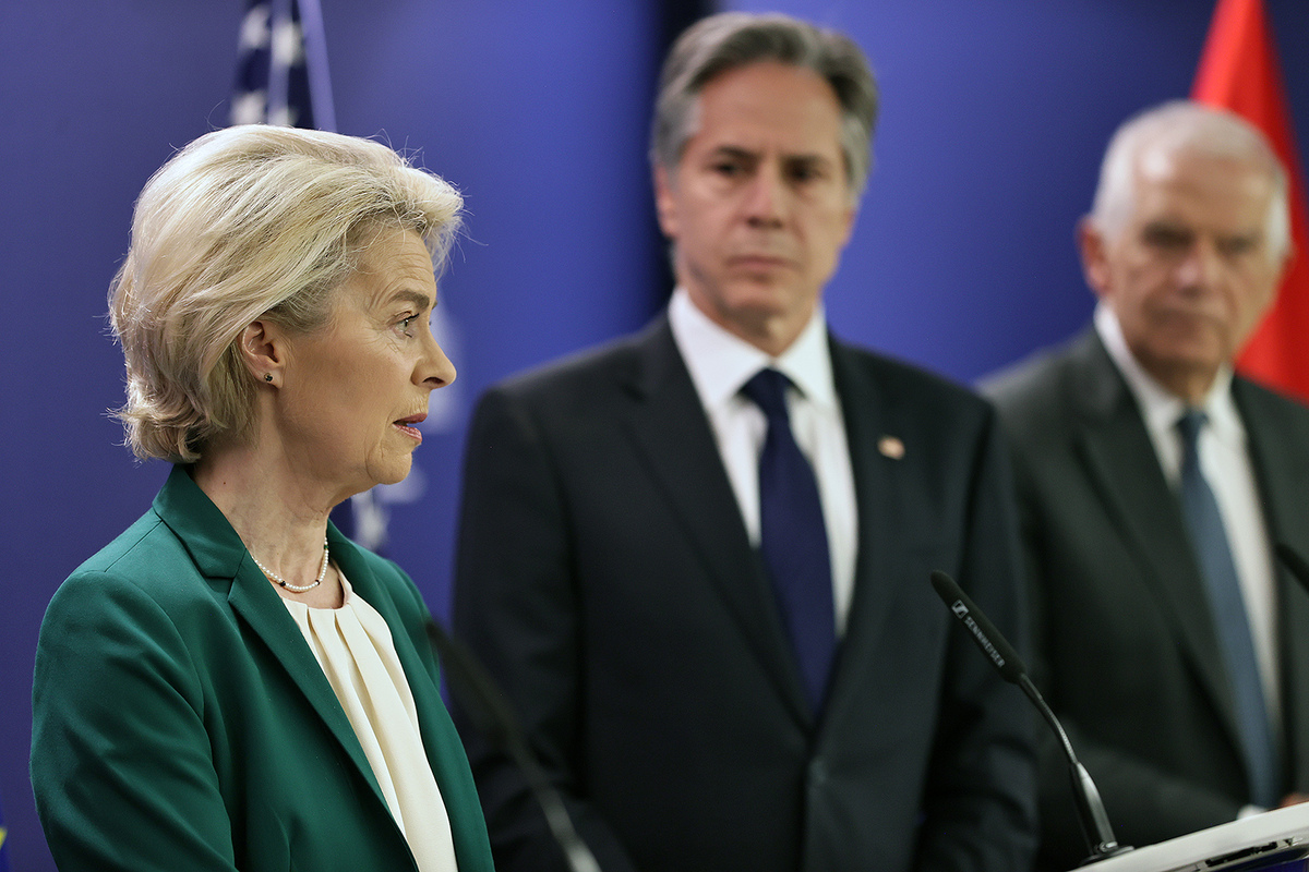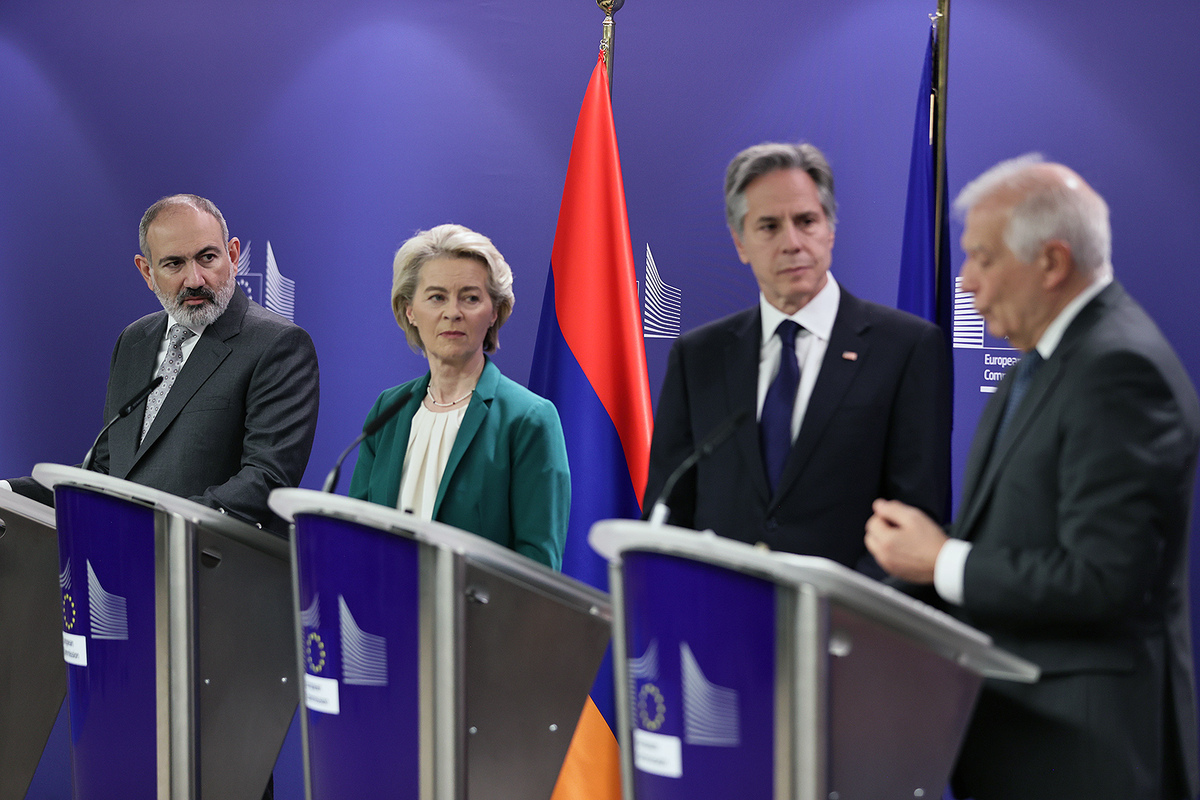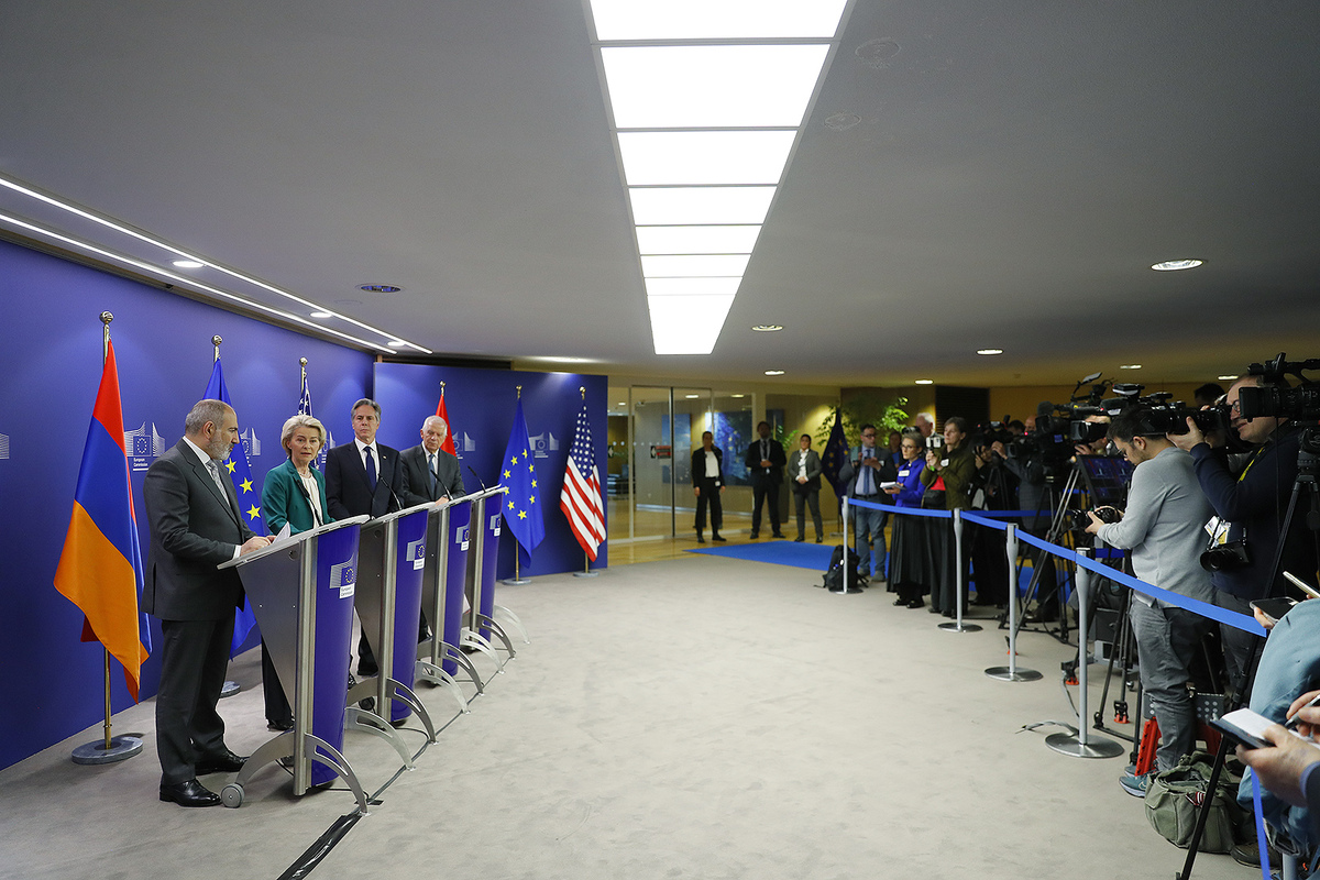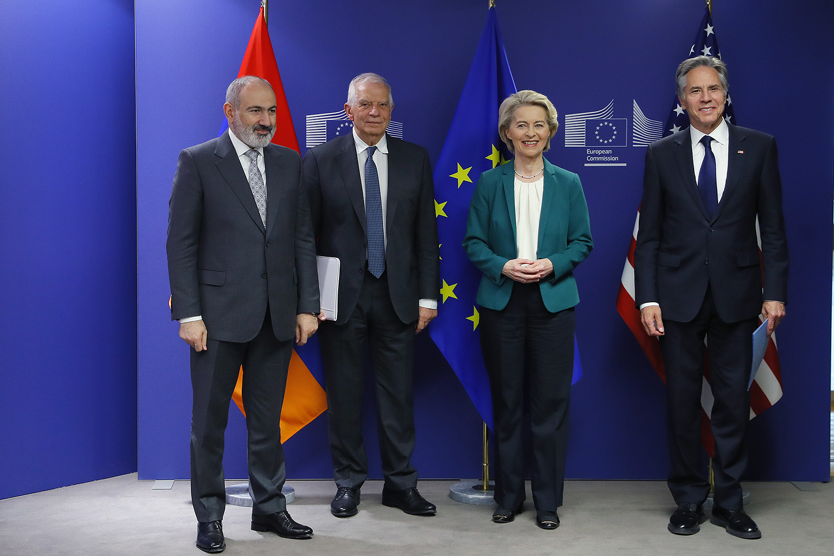 Բրյուսելում մեկնարկել է Հայաստանի վարչապետ Նիկոլ Փաշինյանի, ԱՄՆ-ի պետքարտուղար Էնթոնի Բլինքենի և Եվրահանձնաժողովի նախագահ Ուրսուլա ֆոն դեր Լայենի հանդիպումը։ Մինչ հանդիպման մեկնարկը նրանք և ԵՄ արտաքին հարաբերությունների հարցերով բարձր ներկայացուցիչ Ժոզեպ Բորելը հանդես են եկել հայտարարություններով։ Եվրահանձնաժողովի նախագահն ասել է, որ Եվրամիությունն առաջիկա 4 տարիների համար Հայաստանին կտրամադրի 270 միլիոն եվրո դրամաշնորհ։ «Մենք Հայաստանին 270 միլիոն եվրո դրամաշնորհային աջակցություն կցուցաբերենք առաջիկա չորս տարիներին։ Մեր այսօրվա հանդիպումը վերաբերում է Հայաստանի զարգացման հեռանկարներին, նրա կայունության ամրապնդմանը, ձեռնարկատիրության զարգացմանը», – հայտարարել է Ուրսուլա ֆոն դեր Լայենը։ Պետքարտուղար Բլինքենն ասել է, որ ԱՄՆ-ը Հայաստանի տնտեսությունում 65 միլիոն դոլարի ներդրում կանի։