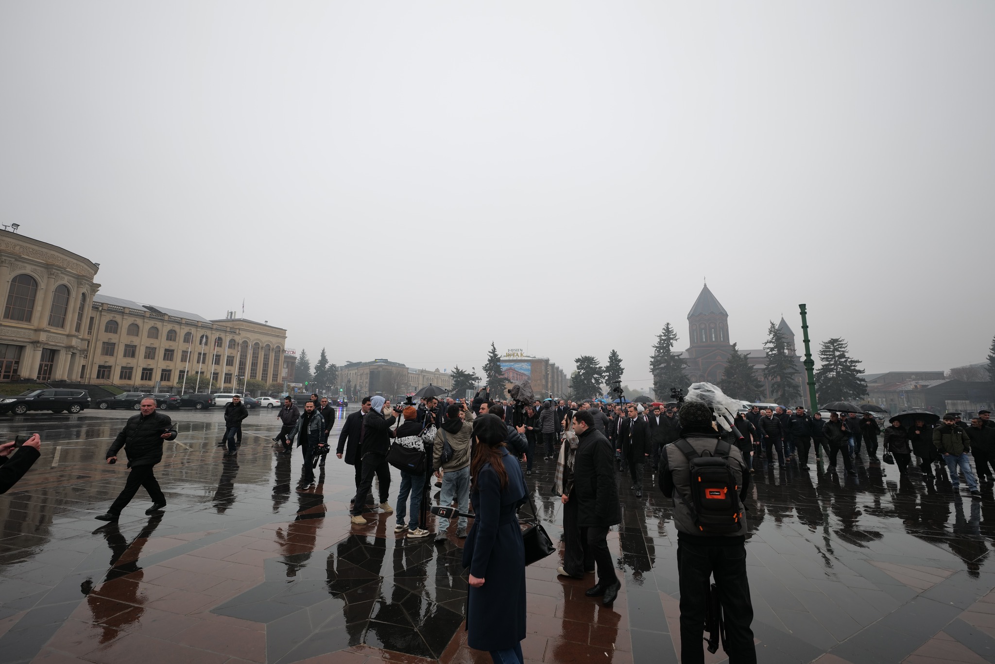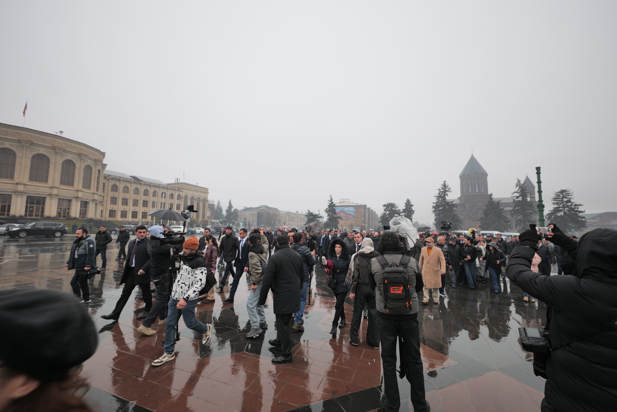 Գյումրու ավագանու «Իմ հզոր համայնք» խմբակցության ղեկավար Ռուբեն Մխիթարյանը համայնքապետարանի շենքից պաստառ էր բարձրացրել՝ ի աջակցություն անազատության մեջ գտնվող սրբազանների։Ոստիկանները մի քանի րոպե անց նրան հեռացրին տարածքից։