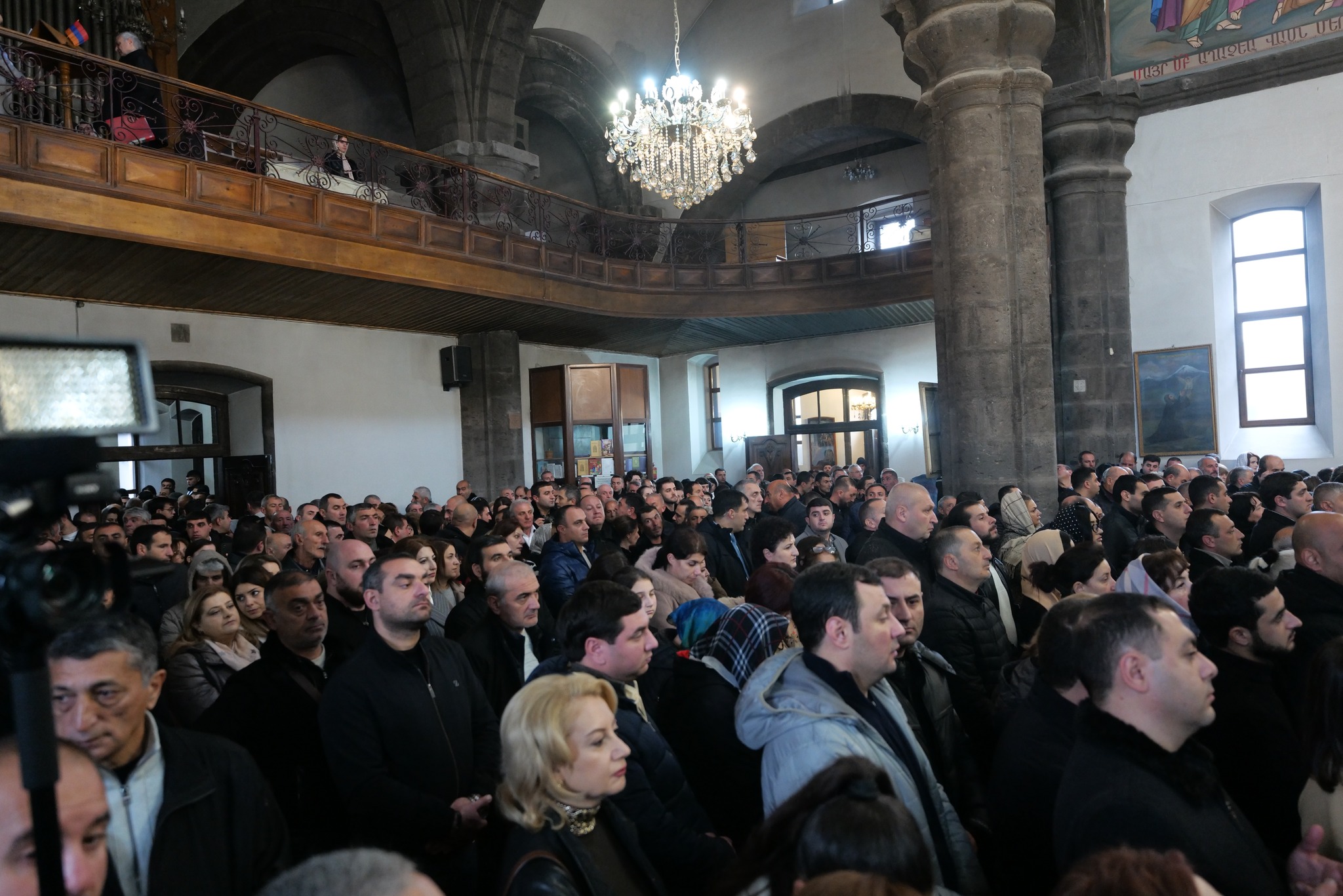 Շիրակի թեմի որոշմամբ՝ անմեղ զոհերի հիշատակին նվիրված պատարագն անցկացվեց Գյումրու Սուրբ Ամենափրկիչ եկեղեցում, քանի որ ավելի վաղ հայտնի էր դարձել, որ դեմ-դիմաց գտնվող Սուրբ Յոթ Վերք եկեղեցում վարչապետի գլխավորությամբ ՔՊ-ի ներկայացուցիչները նույնպես պետք է մասնակցեին պատարագի, որտեղ չեն հիշատակվելու կաթողիկոս Գարեգին Բ-ի և Շիրակի թեմի առաջնորդ Միքայել Աջապահյանի անունները։ Նրանք, ովքեր փորձել էին հիշատակել կաթողիկոսի անունը, արագ հեռացվել էին տարածքից։